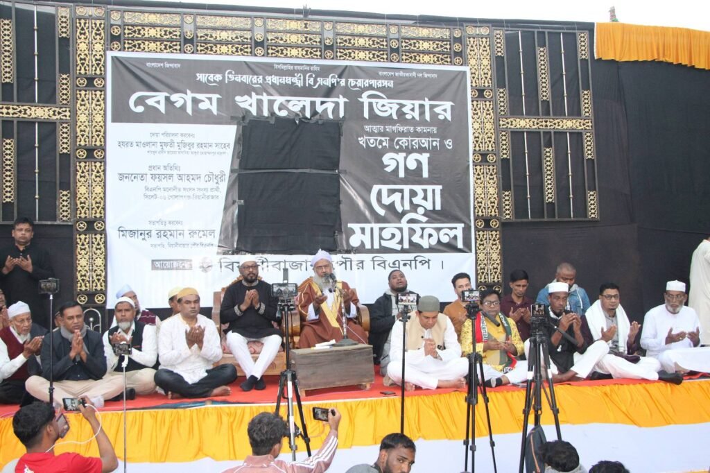 দোয়া মাহফিলে দেশনেত্রী বেগম খালেদা জিয়ার রুহের মাগফেরাত ও দেশবাসীর শান্তি ও কল্যাণ কামনা করা হয়।